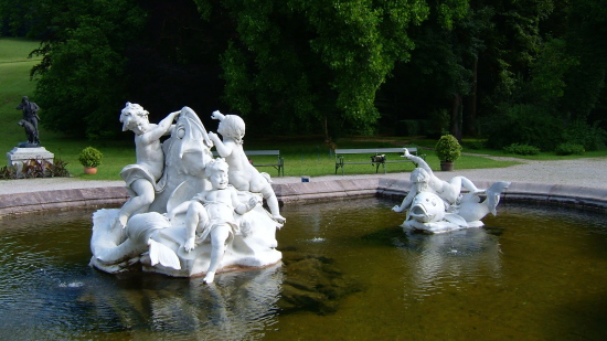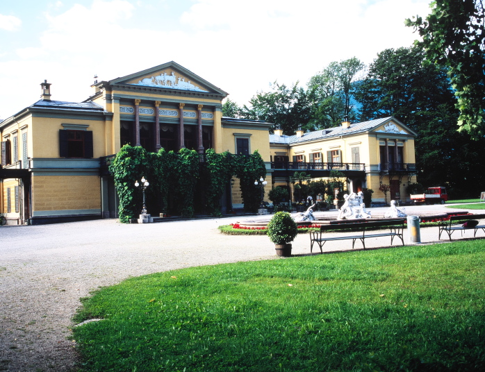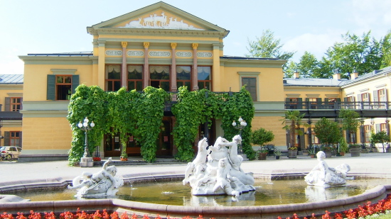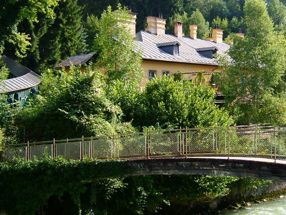 皇帝フランツ・ヨーゼフは、夏になるとこの地を毎年訪れ過ごしたそうです。皇帝の別荘は、イシュル川に面しています。建物の前の庭園は噴水が出る池を配した立派なもので、田舎町にあっても、さすが皇帝の別荘ともなると桁が違うようです。
