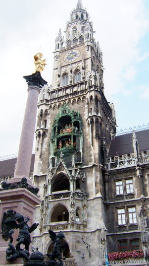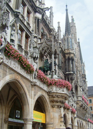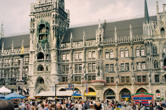 マリエン広場にあるミュンヘンの新市庁舎 ネオ・ゴシック様式の建物。ドイツ最大の仕掛け時計があります。 |