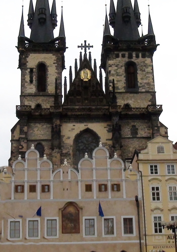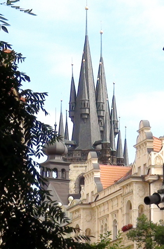 この教会は、黒く重厚な2つの高いゴシック様式の尖塔が特徴で、プラハの象徴的な風景の一つです。