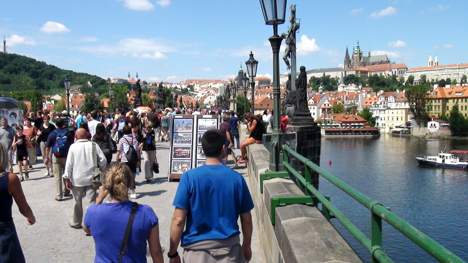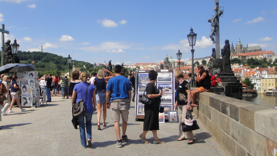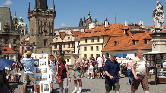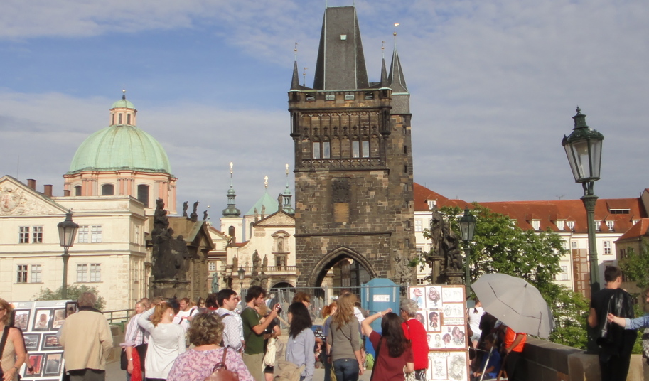 ・モルダウ川が市の中心を流れ、ゴシック様式のカレル橋が架かっております。橋の上ではスタンド露店、芸人等が集まり、多くの観光客でにぎわっています。