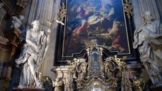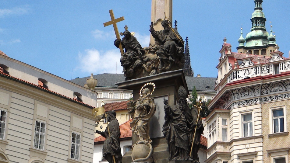 聖ミクラーシュ教会の隣接する小地区広場には、ペスト終焉を記念して建てられた高さ35mの「聖三位一体柱(ペスト柱)」がそびえ、教会と一体となった荘厳なバロック空間を形成しています。 |