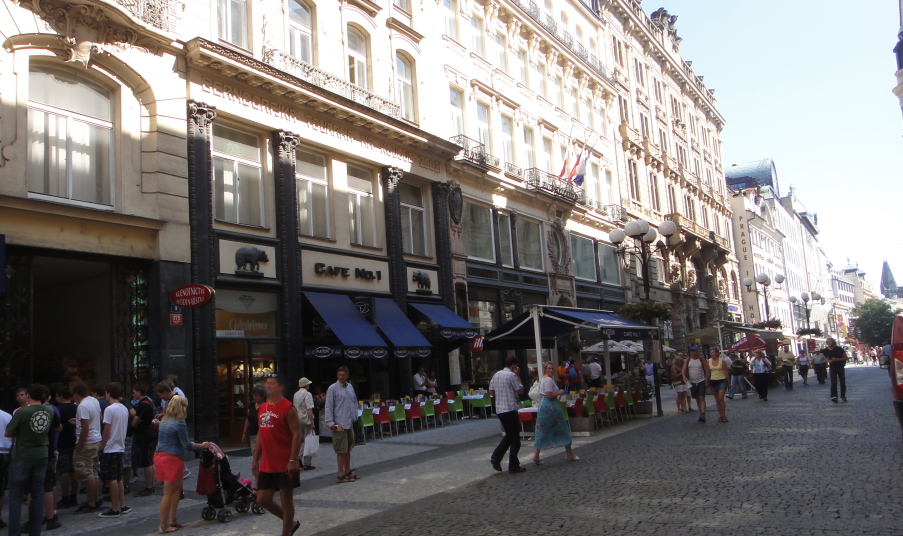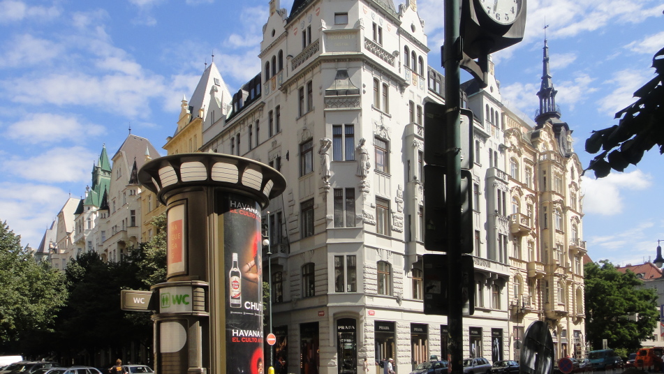 ツェレトナー通り(Celetná)と共和国広場(náměstí Republiky)を結ぶ歴史的な通りです。クラーロッドヴォルスカー通り沿いや、そのすぐ近くには、プラハを代表する建築物が並んでいます |