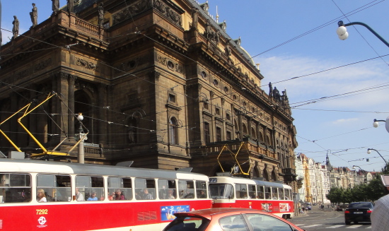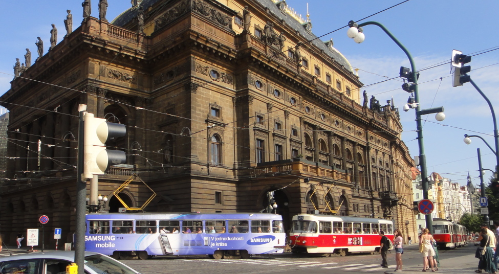 壮麗な建物は、チェコ民族の歴史と芸術を象徴するネオルネッサンス様式の国民劇場です。