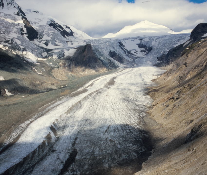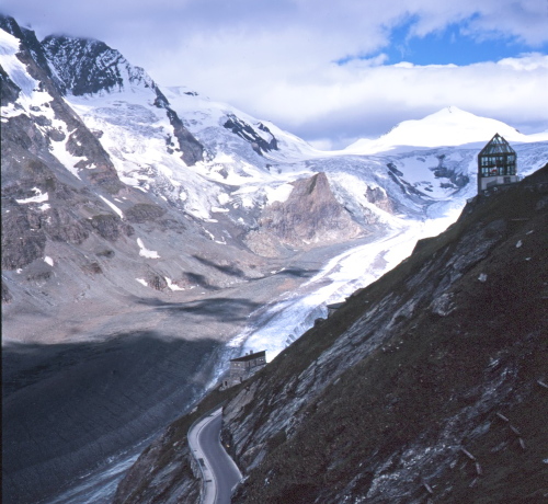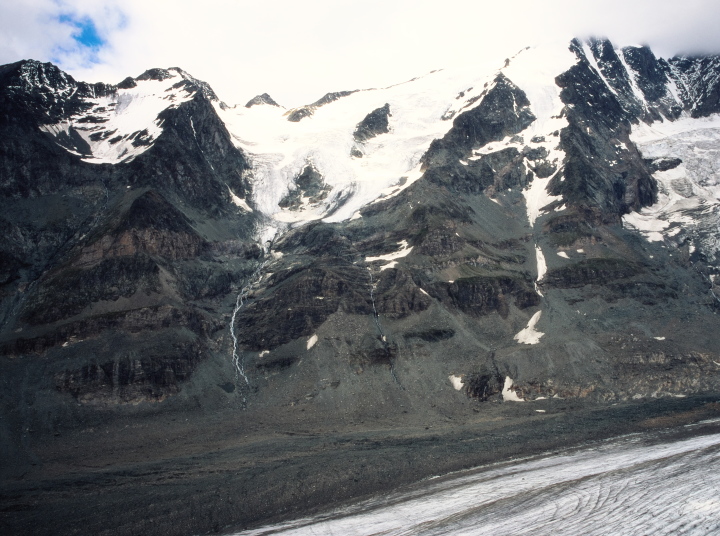 パステルツェ氷河の舌先、真正面より氷河越しに見るグロースグロックナーの壮観は、圧倒的な迫力が有ります。