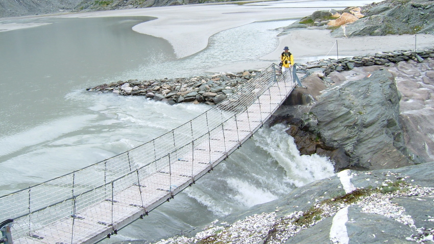 私達はケーブルカーから降りた後少し降りたところより左側に曲がるトレッキング・コースを降りてゆきます。以前は氷河の先端を歩くコースのようでしたが、氷河が後退したのでしょう、今では殆ど氷河の上を歩かずに、コースを進むことが出来ました。