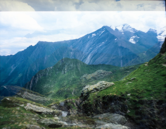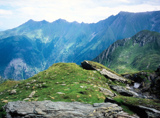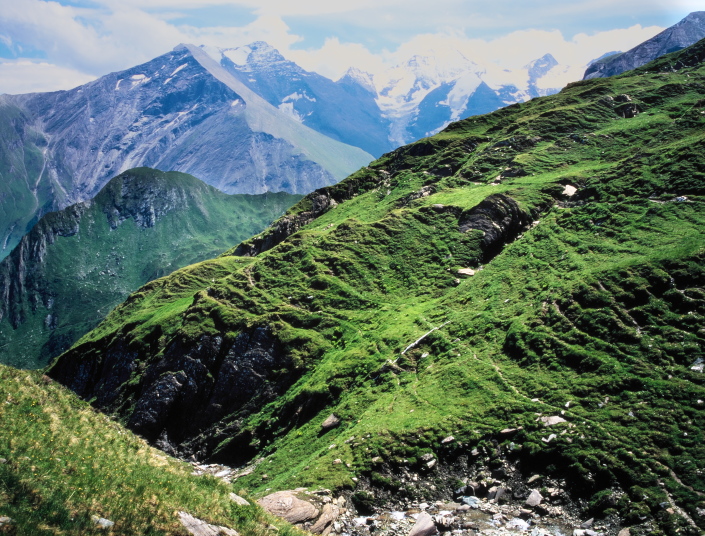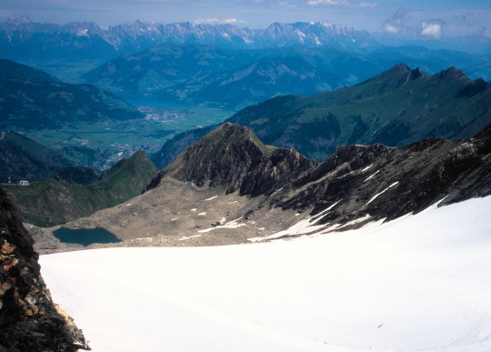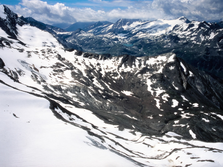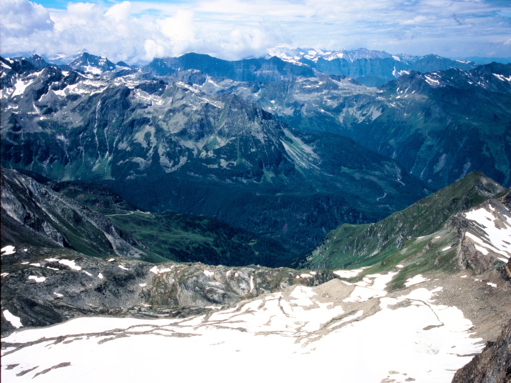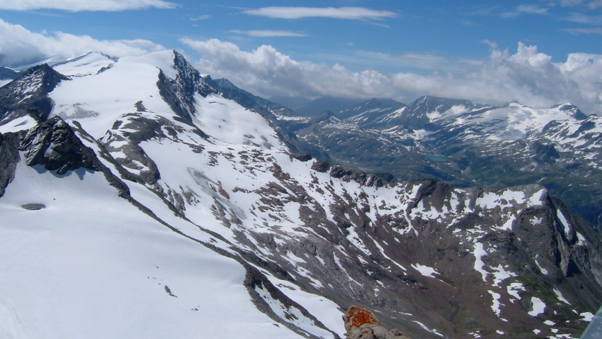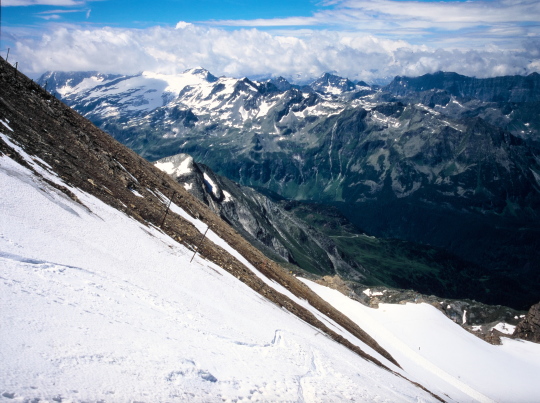 今まで尾根越しに見えなかったグロースグロックナーGroβglockner3798mが見られます。キッツシュタインホルンKitzsteinhorn(3203m)の頂上はもう目の前、手の届きそうな距離に有ります。