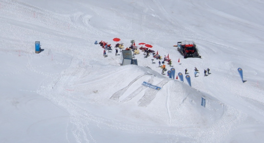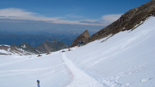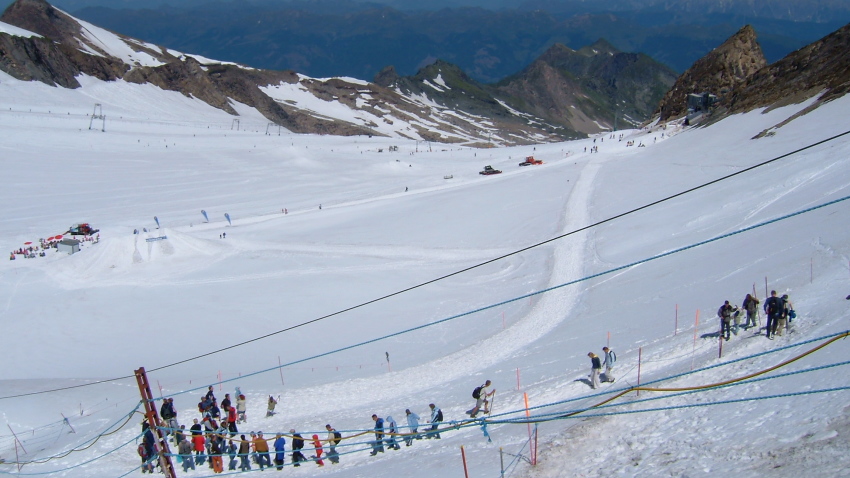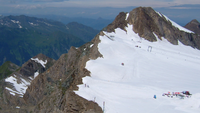 キッツシュタインホルンの氷河の上では夏スキーを楽しんでいる人達が沢山います。