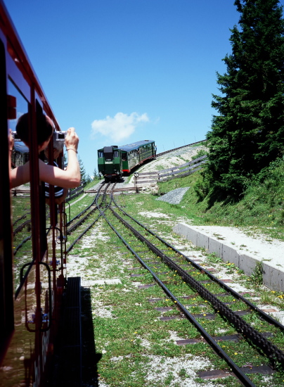 ハイキングは、この頂上より、蒸気機関車が登ってきた線路にほぼ沿うように麓の町ザンクト・ヴォルフガングへ下ってゆきます。2時間30分位の行程です。