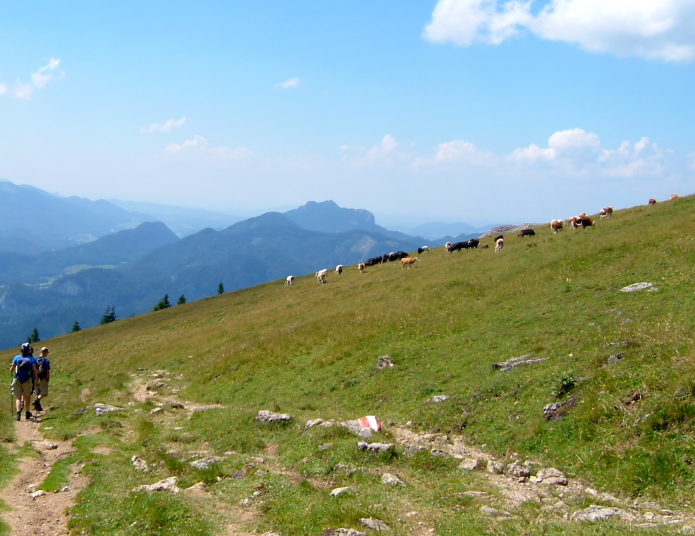 途中、蒸気機関車が喘ぎながら山を登ってくるところに出合ったり、牛達がのどかに草を食む光景に出会ったりで、のんびりした1日を過ごし、自然と溶け合ったような感じのハイキングでした。