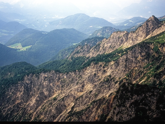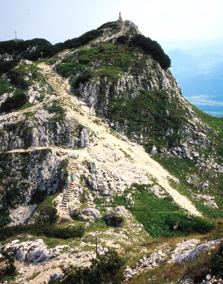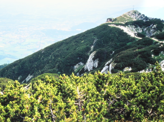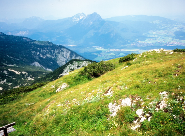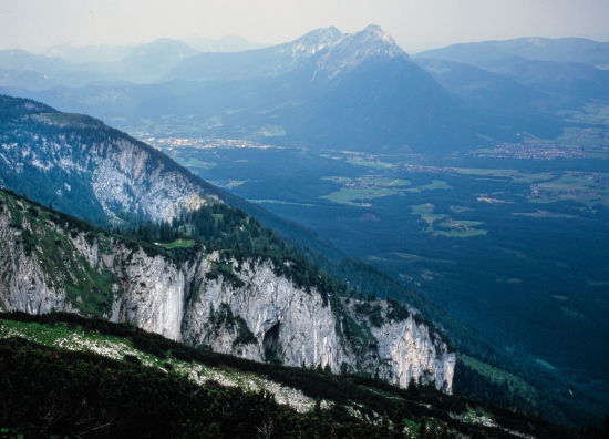 ここからは、ザルツブルグ市を一望する事が出来、南東にダッハシュタイン山群、その右にテンネン山群、ハーゲン山塊更にドイツのヴァッマン2713m等ザルツブルグの名峰が見られます。
