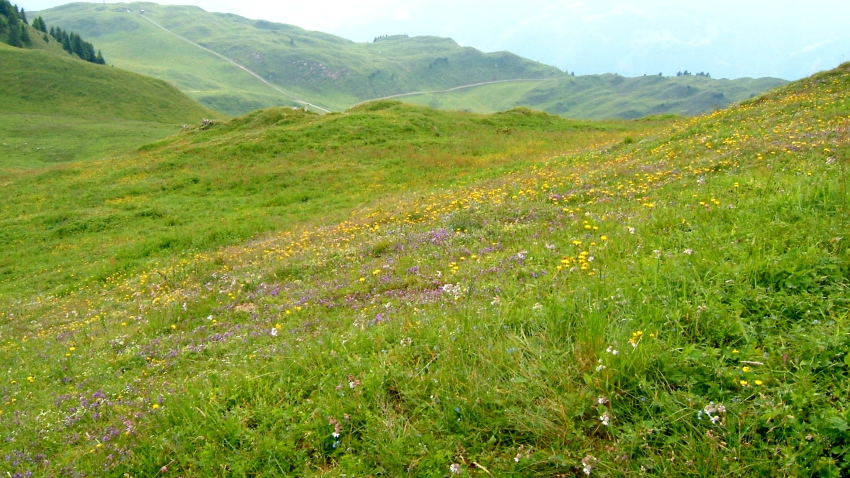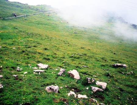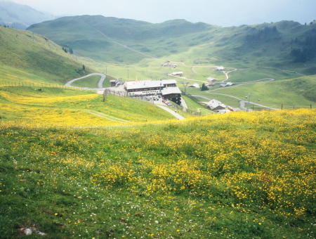 キッツビューラー・ホルンへは、観光客が多く来ますが、平日だったからでしょうか、ハイキングする人は少なく、この日は、広大なアルプの花畑で数組のハイカーに出会った位でした。
