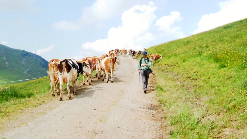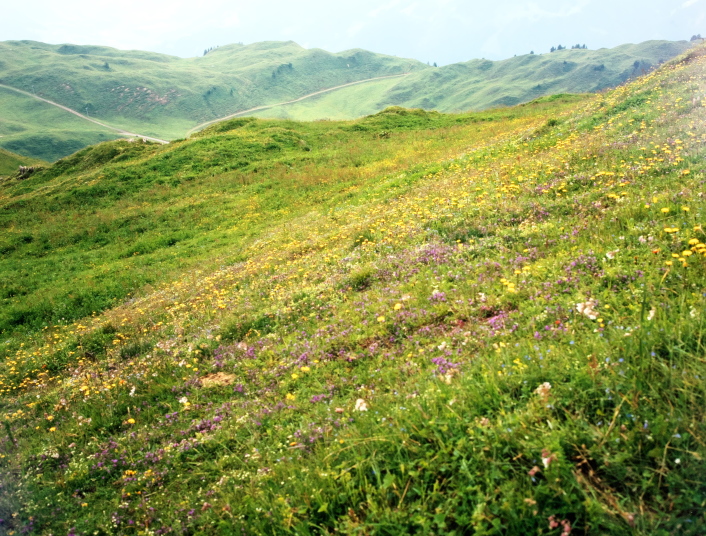 「皇帝山脈」と言う意味のカイザーゲビルゲKaiser Gebirgeの荒々しい山容を見ながら、高山植物が咲き乱れる穏やかな高原をハイキングしていると、時間の経つのも忘れてしまいます。