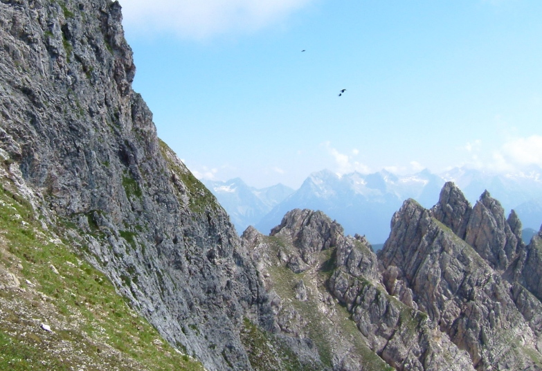 但しこの岩場の登りは距離的には短く、ライターシュピッツェReitherspitze(2374m)の山頂に到着します。山頂からの景色は、息を呑む程素晴らしい眺めです。