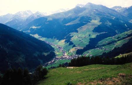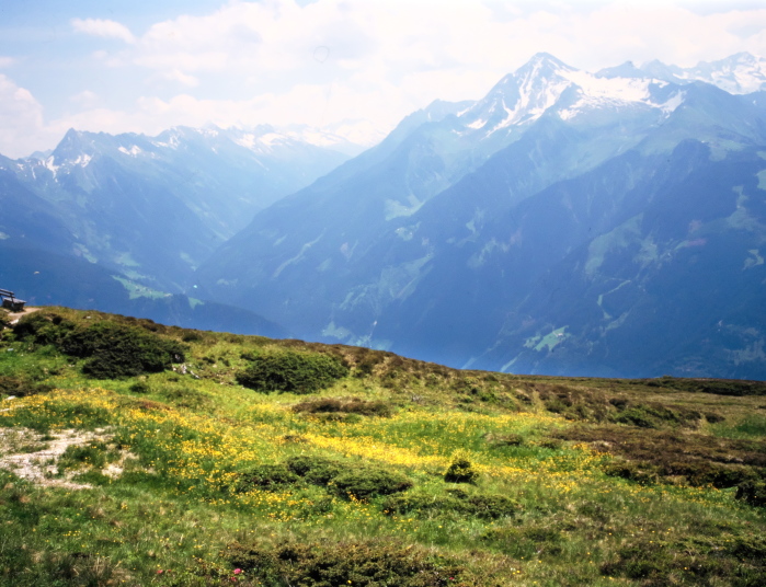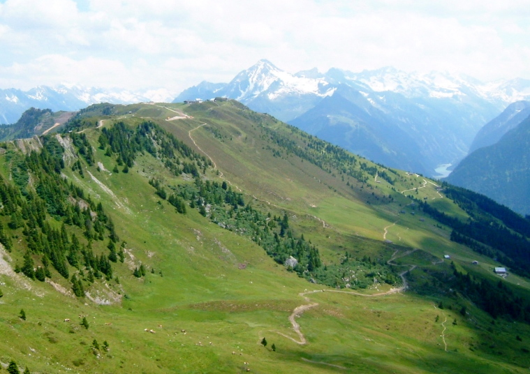マイアーホーフェンの奥は4つの細い谷に分かれており、その先は3000m級の山が聳えるツィラーターラー・アルペンです。