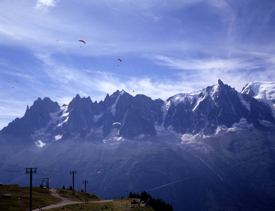 右側の尖った山がAig、du Midi(3842m)絶好の展望台があります。