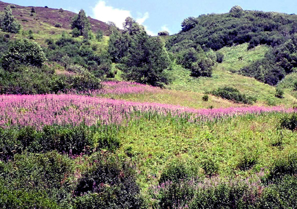 山の中腹に一面に咲いているCommon Fireweed。