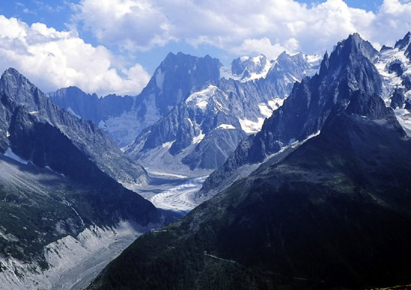 Merde Glaceが中央に見えます、後方にはグランド・ジョラスの北壁が見えます。