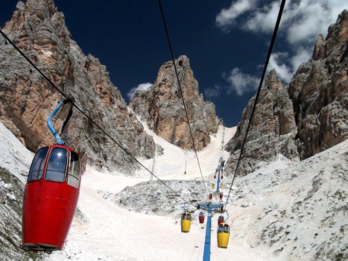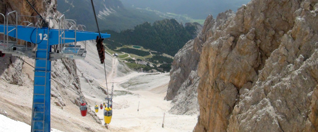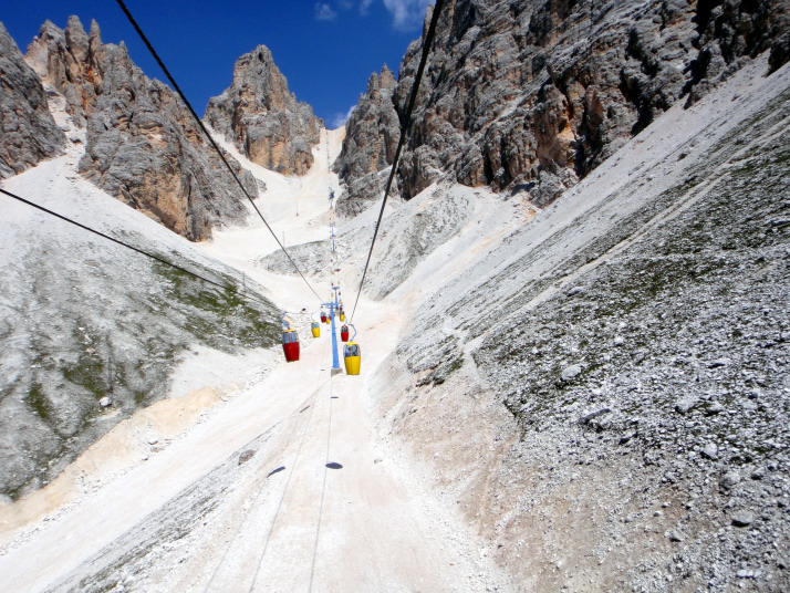 ソン・フォルカ小屋Rifugio.Son.Forcia(2218m)から、リフトで クリスタッロのリフト小屋Rifugio G.Lorenzi(2932m)を目指します。 |