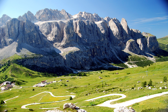 サッソ・ルンゴ(Sassolungo) セッラグループ(Gruppo di Sella) マルモラータ(Marmolata)等、豪快な山々があります。