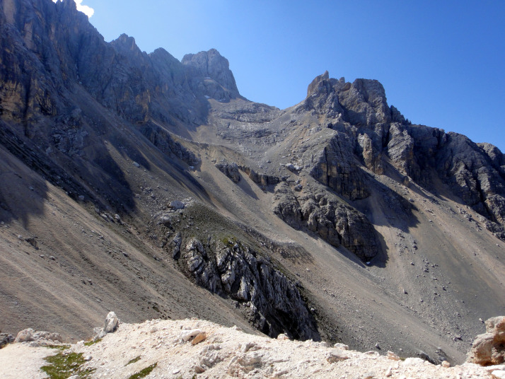 RIFUJIO TONDI(冬場のスキーリフト駅)より見た北側斜面。 針樹状の峰が連なっています。 |