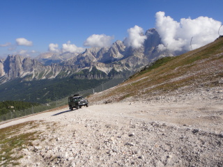 観光用ジープがこの斜面を駆け上り、RIFUJIO TONDI(冬場のスキーリフト駅)の見晴らし台迄、顧客を運んでいます。 |