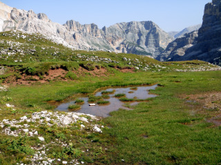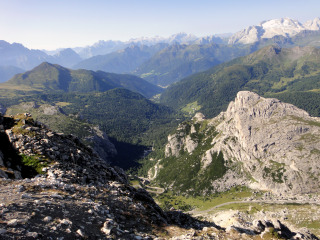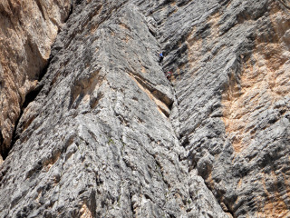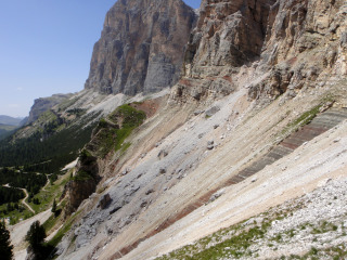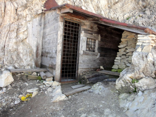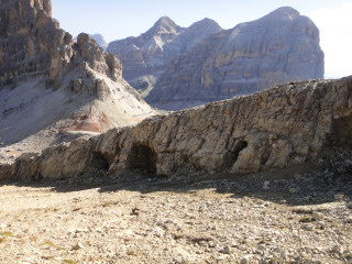第一次世界大戦時、イタリア軍とオーストリアの山岳兵が戦った塹壕が岩壁に残っています。塹壕には、谷越しに相手側の陣営を見る為に、断崖の岸壁を削った窓が有ります、 |