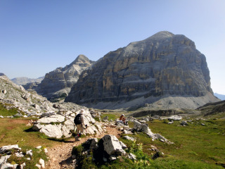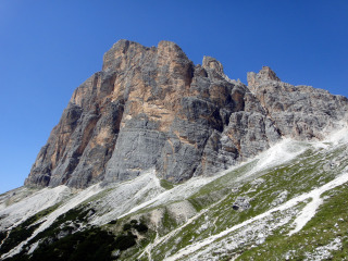 左側、奥の頂きはソラピス(Punta Sorapis 3205m)、その右端はアンテラオ(Monte Antelao 3263m)です。