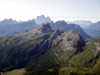 遠くにモンテ・ペルモ(Monte Pelmo3168m)が見えます。中央の霞んで見える山。