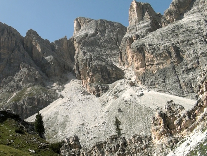 第一次世界大戦時、イタリア軍とオーストリアの山岳兵が戦った塹壕が岩壁に残っています。塹壕には、谷越しに相手側の陣営を見る為に、断崖の岸壁を削った窓が有ります、 |
