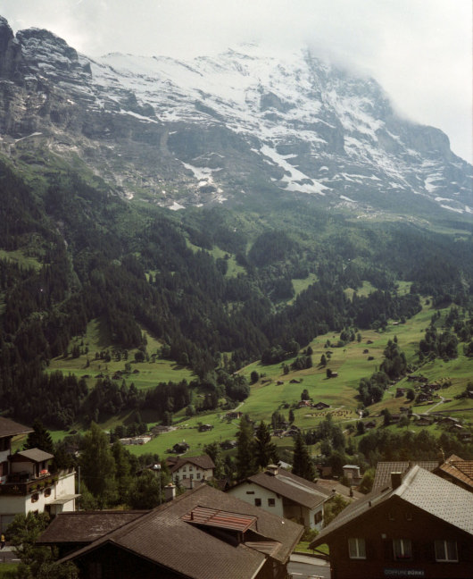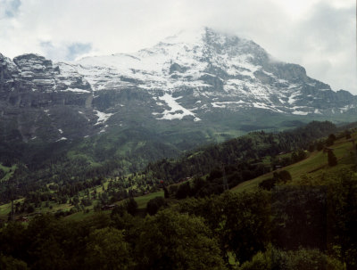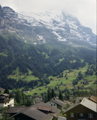 アイガーの麓です。平野の少ないスイスでは、昔より牧草地を造るため極限まで森林を開墾していったそうです。