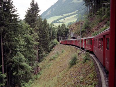 ルツェルン(Luzern)、ブリエンツ(Brienz)間は、山肌を縫うように列車は走って行きます。