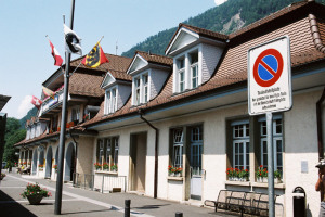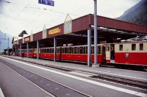 インターラーケンからグリンデルワルトへ行きの列車(私鉄BOB)に乗り隣駅のビルダースヴィルで降りると、駅前にシニーゲプラッテ行きの登山鉄道SPBが待っている。