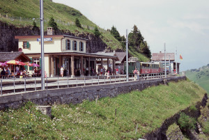 景色に見とれている間にシニーゲプラッテ駅(1967m)に到着です。駅は山の頂上近くの台地のような地形に有ります。