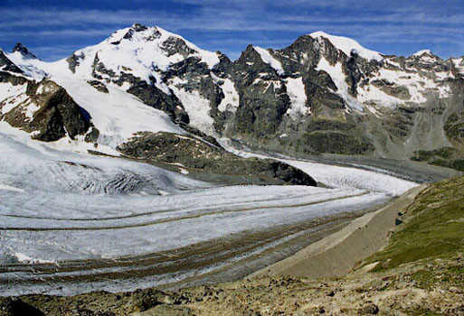 ディアヴォレッツア展望台より見たピッツ・ベルニナ(Piz Bernnina 4,049m)です(左側の山)