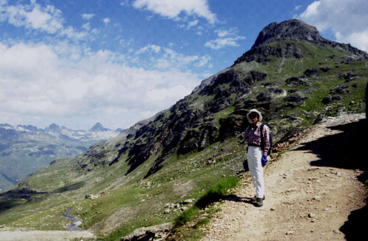 ゴルヴァッチュ(P.Corvatsch)展望台から下りのケーブルカー中間駅ムルテル(Mrutel 2.,699m)で降り、カールのガレ場をトラバースすると30分位でスルーレーユ峠に到着します。 左手はシルヴァプラーナ方向の景色です。
