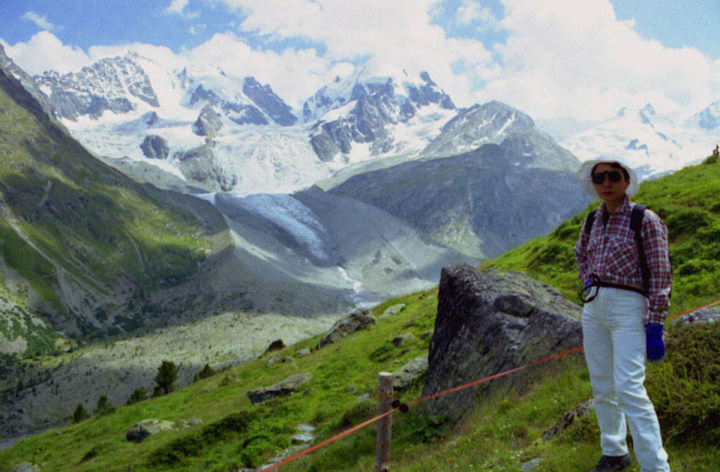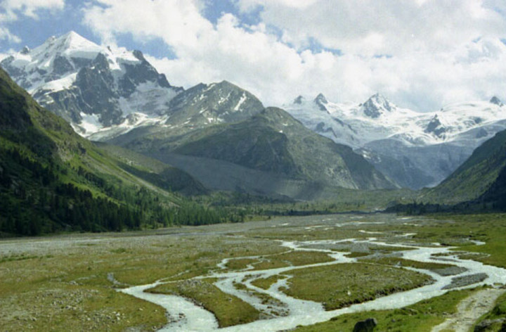 ロゼック谷(V.Roseg)のトレッキングは、ピッツ・ベルニナ(Piz Bernnina 4,049m)、 ピッツ・シエルシエン(Piz Scerscen