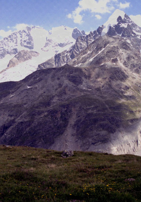 ロゼック谷は可憐な高山植物と豪快な氷河が良く調和しています。