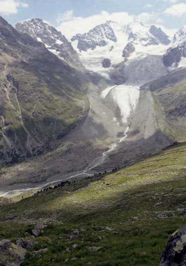 Roseg 3,937m)。流れ出すチエルヴァ氷河。