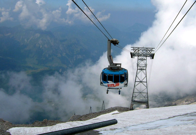 ティトリスに向かう世界初の回転式ゴンドラリフト