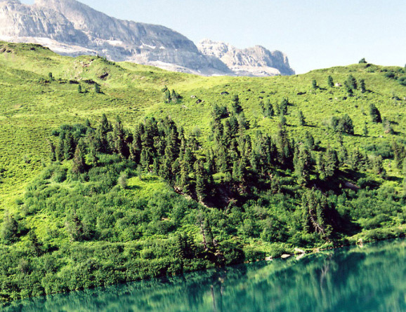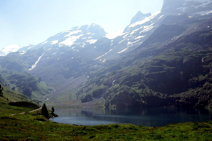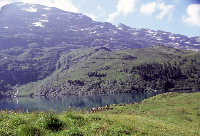 湖の南面には、Wendenstocke3042mを主峰とした山々が屏風のようにそびえています。