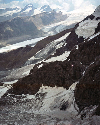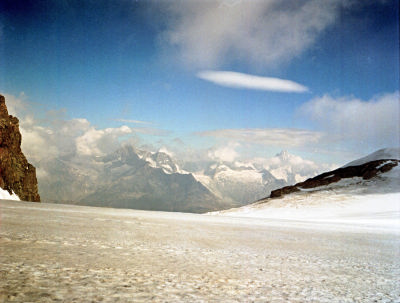 スネガは展望台として有名です。ブライトホルン(Breithorn 4,165m)、オーバー・カーベルホルン(Ober Gabelhorn 4,063m)、チナールロートホルン(Zinalrothorn 4,221m)、ヴァイスホルン(Weisshorn 4,505m)等ヴァリスの名峰が一望出来ます。