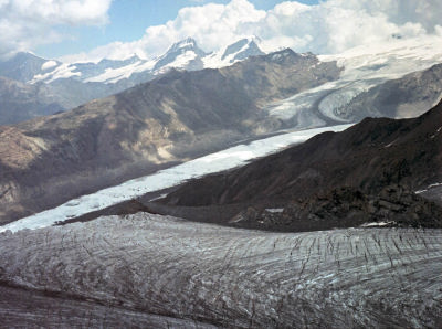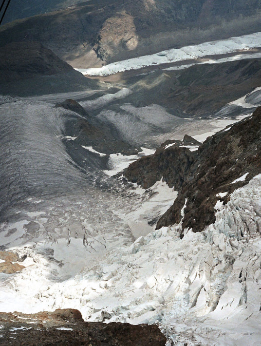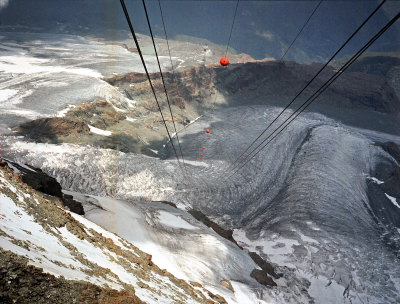 ツェルマットより、地下ケーブルでスネガ(Sunnegga)まで登り、更にロープウェイに乗るとウンターロートホルンまで最短距離で行けます。