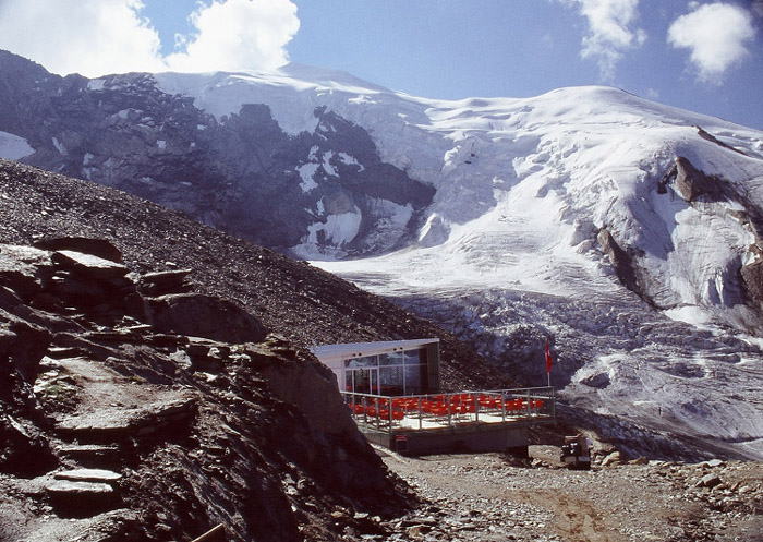ホーサスHohsaas3200mからの眺望は素晴らしく、特にヴァイスミースの頂上まで2kメートル位で、迫力満点です。氷河を目の前に見ることが出来る、眺望の良い展望台です。