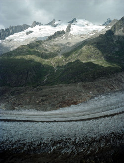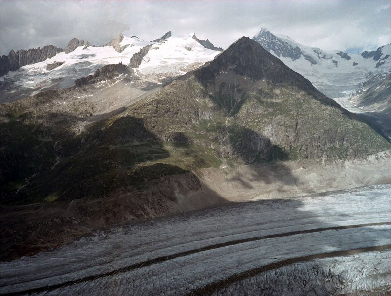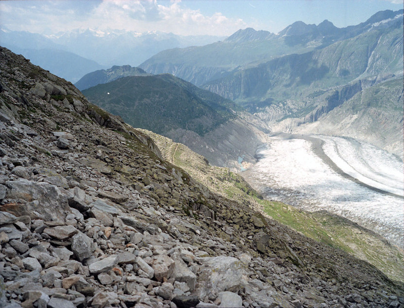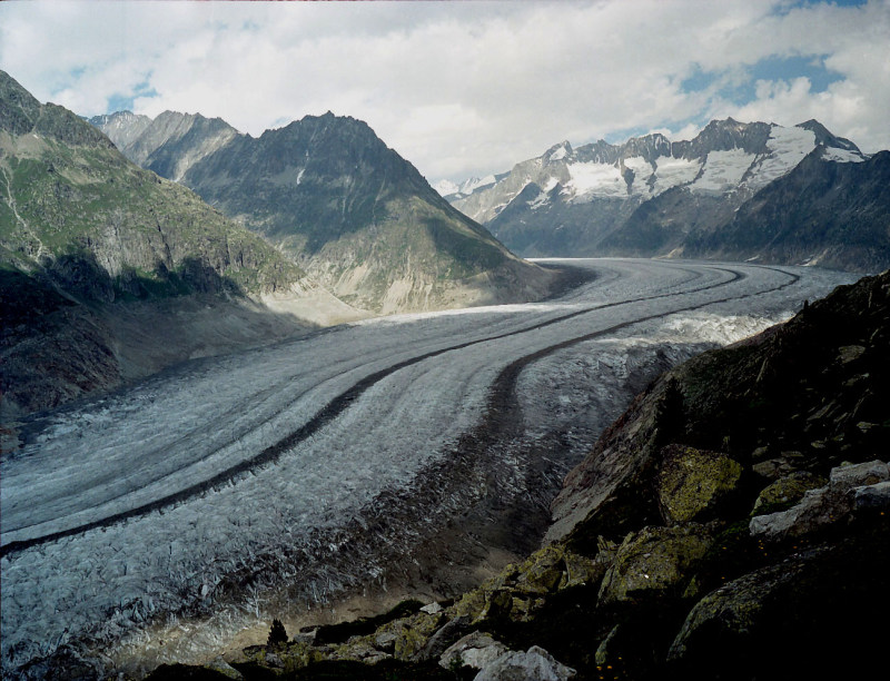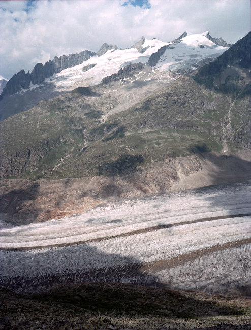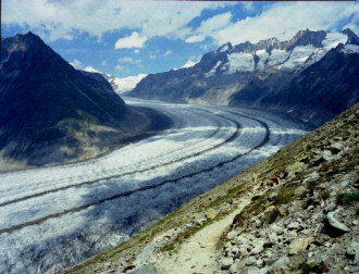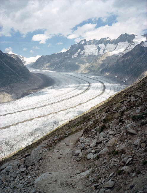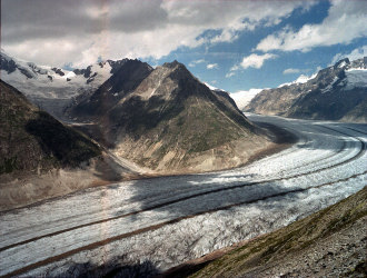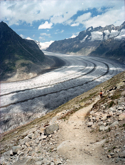 ユングフラウ・ヨッホより見るアレッチ氷河は、定番の景色ですが、実はアレッチ氷河の一部、上流部しか見ていません。