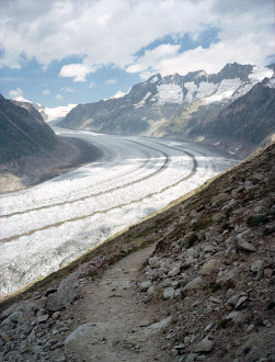 ベットマーグラート展望台付近からは、アレッチ氷河が右に急カーブしてしまうため、ユングフラウヨッホを見ることは出来ません。