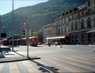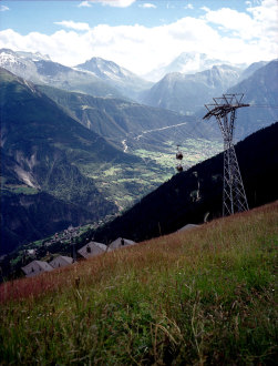 〇ブリーク(Brig)駅を出ると3番目の駅メレル4番目の駅ベッテン更に進んでフィーシュ駅から各々中腹までロープウェイが出ています。更にロープウェイ、ゴンドラリフト等に乗り稜線に出ます。