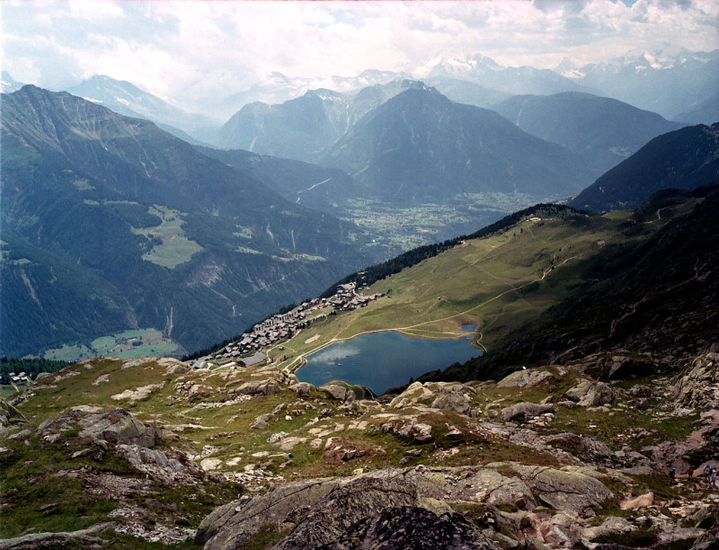 このアレッチ地域の尾根筋からは、ベルナー・オーバーランドの山々の南面を見渡すことが出来、また振り返ると逆の方向にミシャベル山群・ヴァリス山群の北面を見渡すことが出来ます。