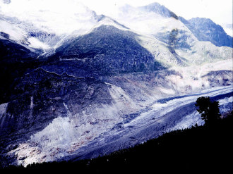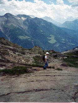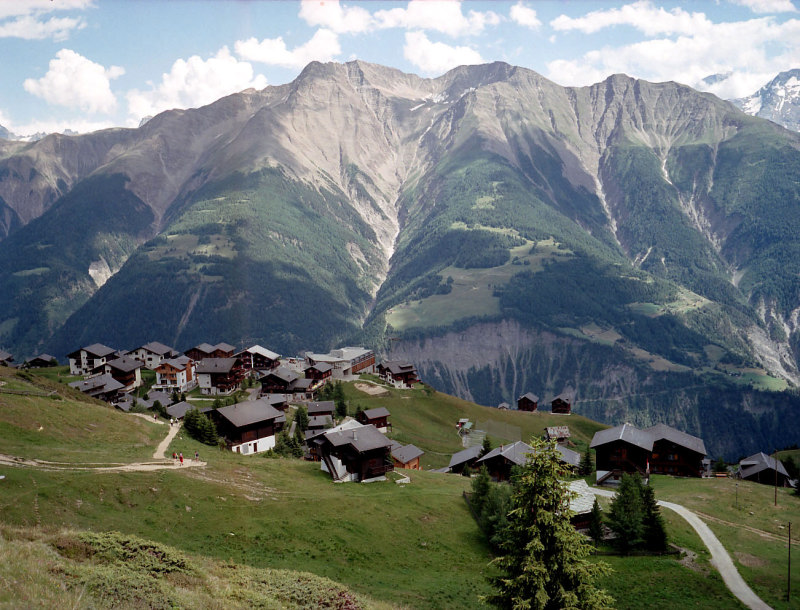 ベルナー・オーバーランドの山を見る時、一般的にはグリンデルワルト方向(北側)から望みます。アレッチ地域はその反対側(南側)に位置する地域で、ローヌ谷の上流部の尾根筋と中腹部の総称です。