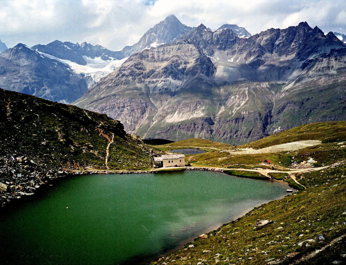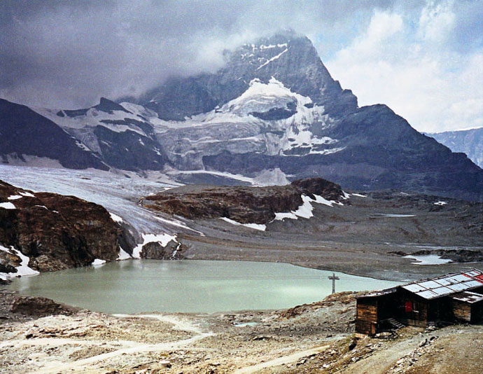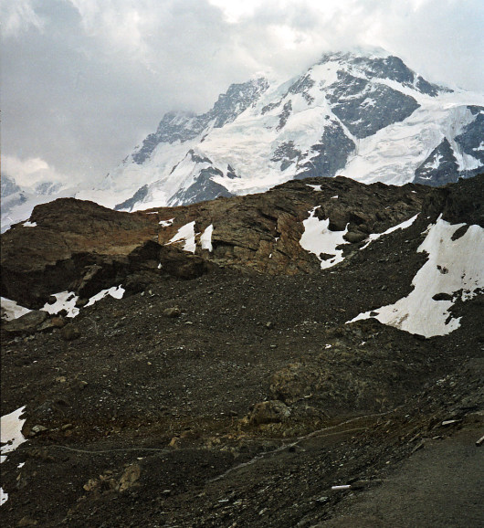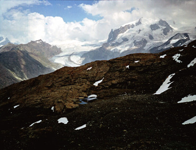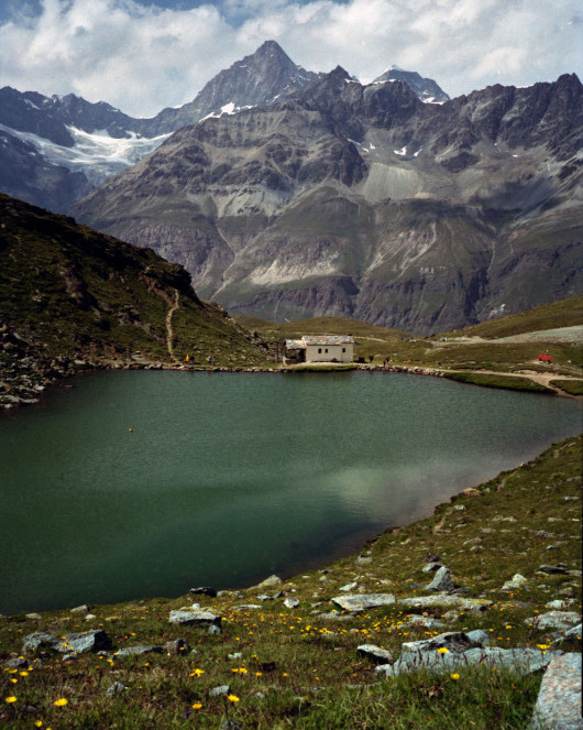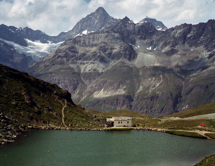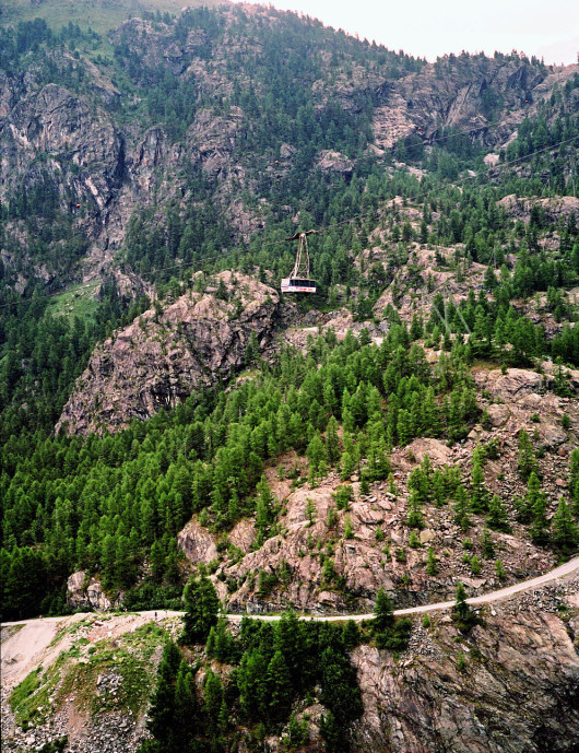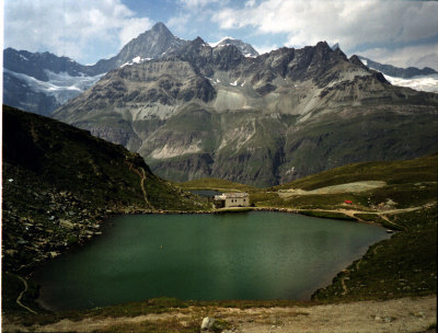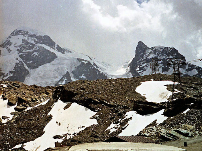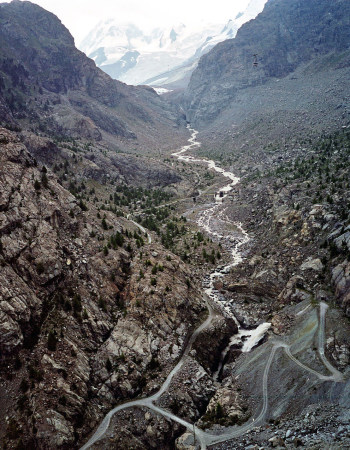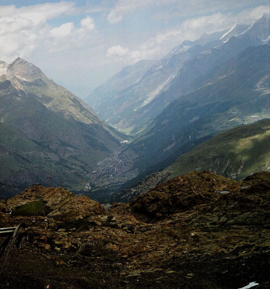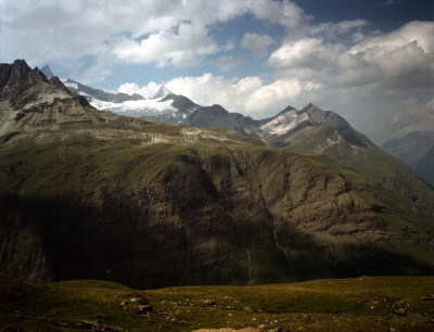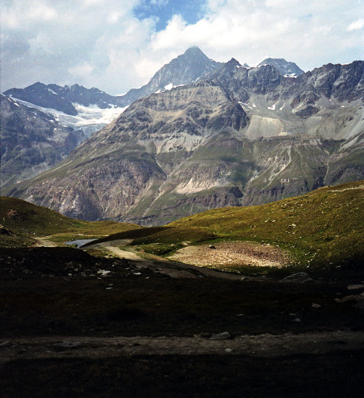 シュタフェルアルプは、ツェルマットの谷を更に登って行くとツムット氷河に突き当たります, その手前のアルプです。丁度写真の谷がシュタフェルアルプです。