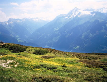 マイアーホーフェンの奥は4つの細い谷に分かれており、その先は3000m級の山が聳えるツィラーターラー・アルペンです。